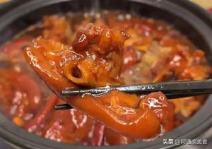 刚刚出锅的黄豆炖猪蹄香气四溢,很是引人食欲。猪蹄肉质软烂,一口下去,满嘴的胶原蛋白。汤汁香醇可口,实在是太好喝了。