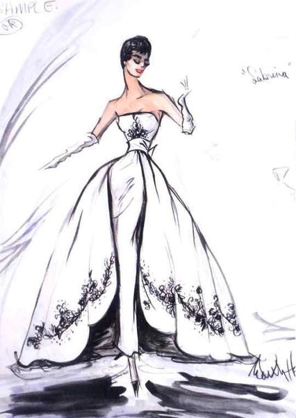 基于此,《龙凤配》里这件著名的、具有划时代意义的白纱黑蕾丝刺绣裙裤就此诞生,横空出世,在人类服装史上无疑具有承上启下的作用,在大西洋两岸、乃至全世界范围内收获了一片赞誉之声。