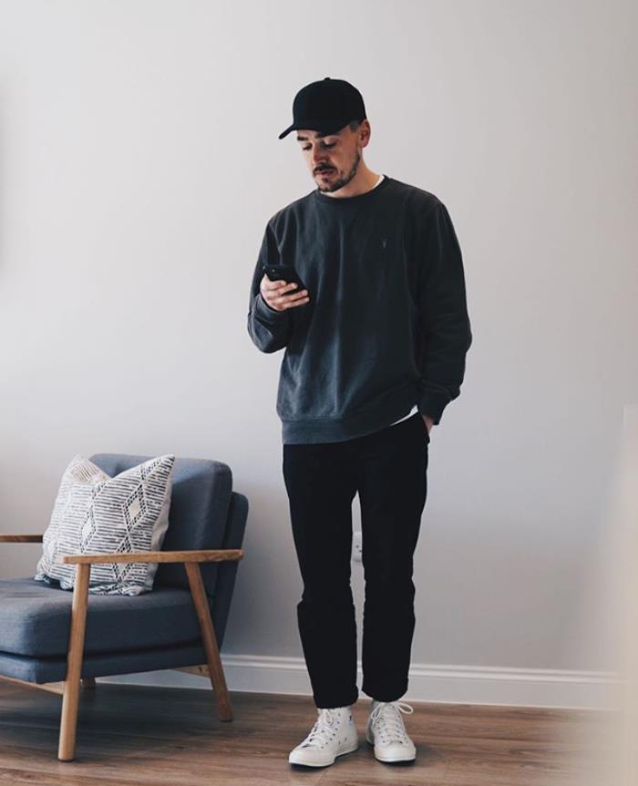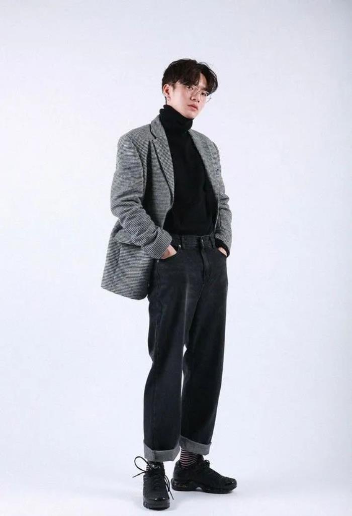 上下身的色调统一,并不是只能打造黑色调造型,像蓝色调、灰色调、大地色调这些造型都很常见,最直接的搭配方式就是衣服和裤子的颜色一致。