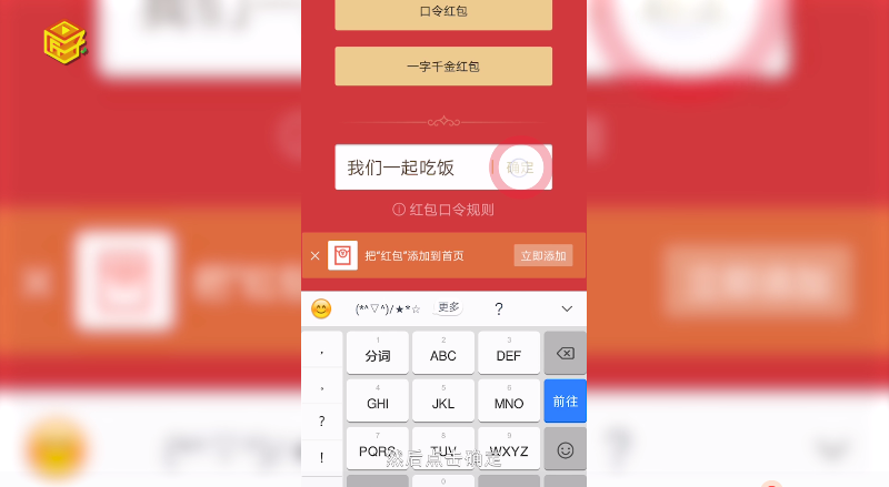 找到输口令,领红包选项