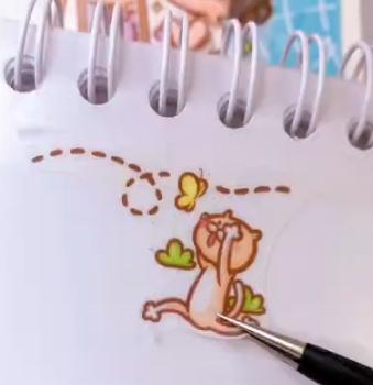 3.将小猫的贴纸放在页面的边缘处。