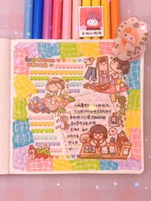 6.最后写上当天的日记,这样一个可爱的手账排版就做好了。