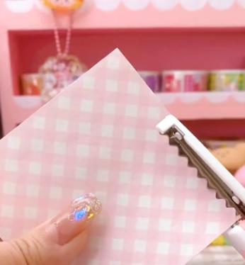 2.用花边剪刀将格子便签变成花边,看起来会更可爱一些。
