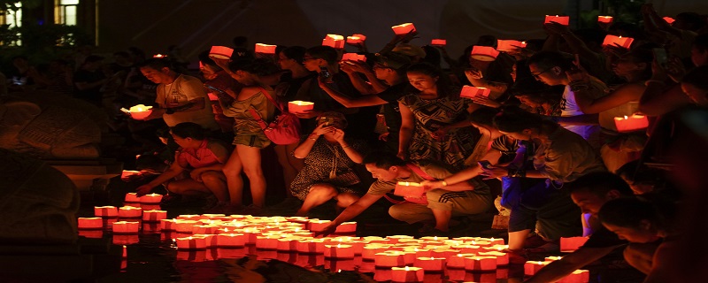 夜幕低垂,水灯节最美丽的时光就开始了,人人手捧着各式各样造型的水灯,其中尤以莲花造型的水灯最多最美。