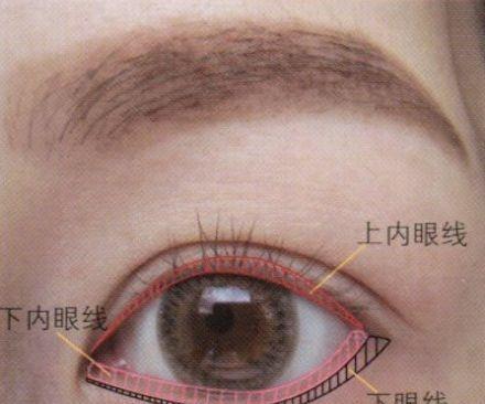 如图,内眼线应该涂在睫毛根部,外眼线可以没有,但内眼线一定要有!