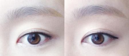 看看对比图,是不是画个眼线整个人就精神了很多,而且眼睛很干净噢~