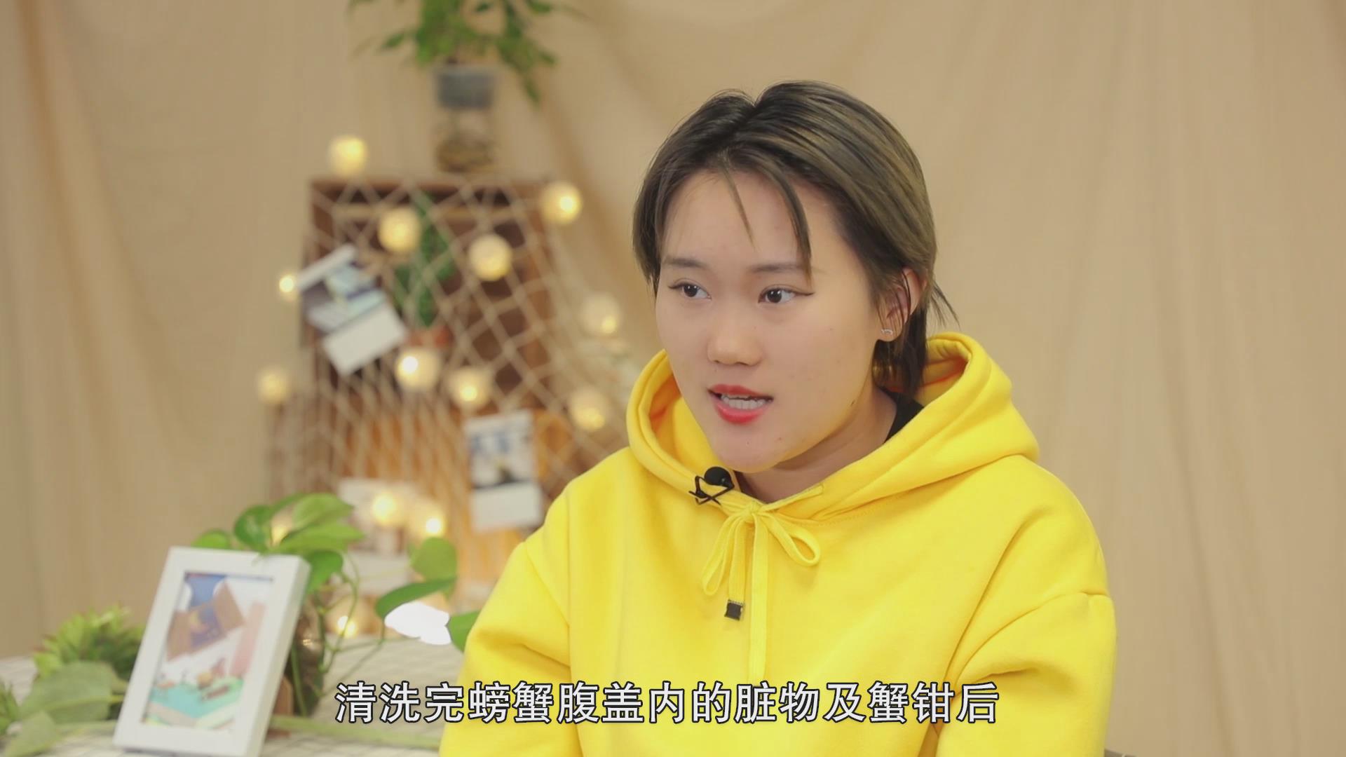 紧接着抓住螃蟹双钳,用牙刷柄从下向上挑起双钳的关节处,打开腹盖,从里向外挤出螃蟹排泄物。