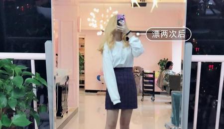 纯正的烟灰色褪色后是这样效果,有些倾向于亚麻色,看起来还是不错的,很显皮肤白皙,大家做完漂发要按时护理头发哦~有好看的颜色也要有健康的发质~