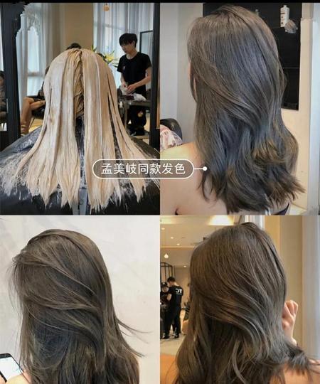 图片中的小姐姐,头发漂过两次头发就呈现出米白色,因为她的头发比较细软,色素很容易被拿走,做烟灰色还是很快捷的,相比粗硬的发质要快很多,粗硬发质可能漂三次才能达到底色要求。