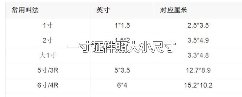 一寸证件照大小尺寸