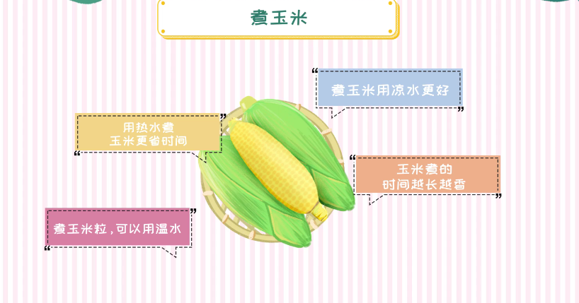 玉米当中含有大量烟酸,烟酸是一种特殊的营养素,但是这种营养素不容易被人体吸收,煮玉米的时候加一点小苏打或者食用碱,能够帮助烟酸更好的分解。