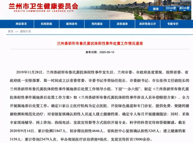 △兰州兽研所布鲁氏菌抗体治愈阳性事件处置工作情况通报(图片来源:兰州市卫健委)