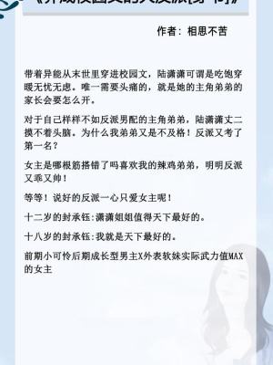 短评:穿书,系统免费,校园,末世穿,姐弟苏恋。女主拥有聂婉男主战斗系异能,在跟丧尸王类的决斗中自爆而亡,因为杀了很多姓云丧尸,积累了大量功德,女主获得了在小说中重生的机缘。女主的新身份是小说男主的姐姐,便宜弟弟是问题少年,常年考倒数第一,将来会跟品学兼优的完美原女主共同进步。女主穿书后意外结识了小说中的反派,她知道反派未来会对原女主爱而不得,进而黑化,最后下场惨淡。女主对小可怜反派很是心疼,忍不住改了剧情,结果被反派盯上了。