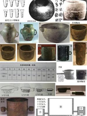 在《左传》、《周礼》、《仪礼》、《尔雅》等典籍中都有记载,专用名称有“升、斗、斛、豆、区、釜、钟、溢、掬”等。