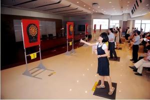【比赛规则】:每队拿到10支箭,在规定时间内投中箭数量最多的团队获胜,如数量相同,则石头剪刀布对决。