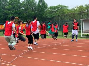 【比赛规则】:2人摇绳,其余团队成员集体跳长绳,在规定时间内全队完成的跳绳次数为该队成绩。