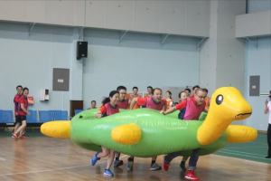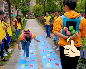 【比赛规则】:在30米跑道上分4个点,每个点上站一个人,比赛开始后起点的队员拿两个西瓜皮球运给第二名队员然后回到起点在拿两个西瓜皮球,第二人运给第三人,然后回去接第二轮,以此类推,一直把8个西瓜皮球运完为止,比赛结束,用时少的队伍获胜。【比赛人数】:每组4人,男女不限。