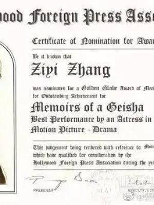 章子怡凭借该艺伎电影成为第后的一位获得金球奖影后提名的华人女演员▼