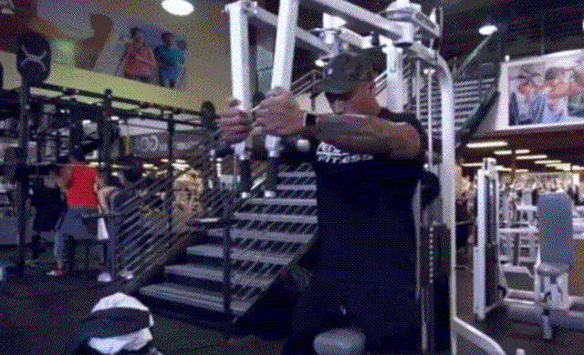 利用龙门架可进行各种体式(站姿、坐姿及仰卧)的绳索张力的深度夹胸锻炼,使胸大肌更厚实。