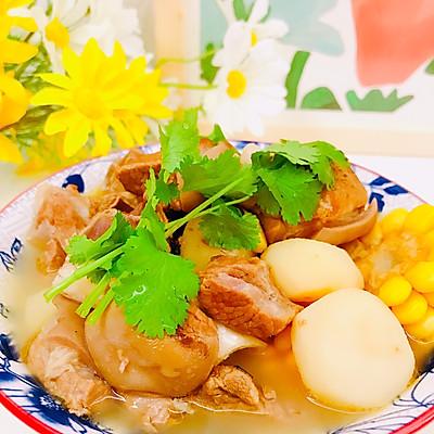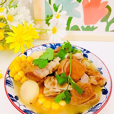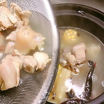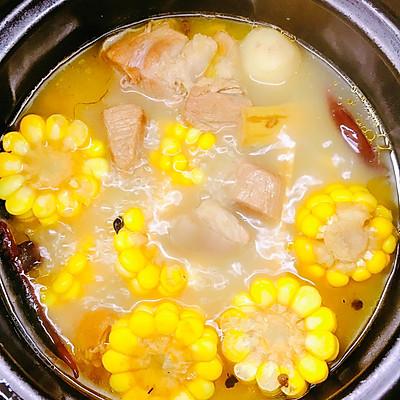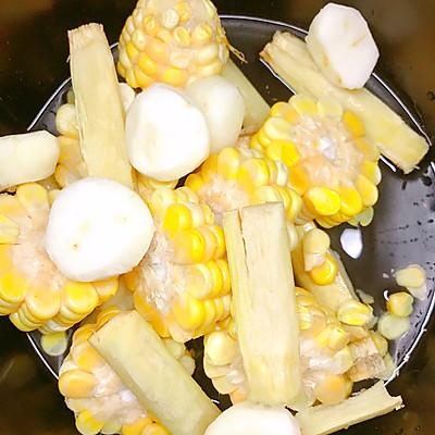 17、将汤能白玉米合适、马蹄、甘蔗炖放入算煲中