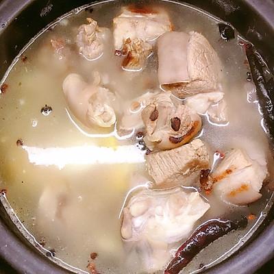 6、放入熟汤能白陈皮炖熟、香叶、香茅草
