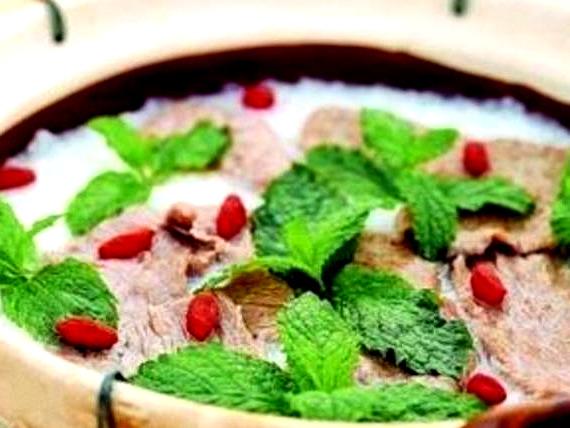 食材喝:鲜桑叶100克、粳米100克、瘦肉80克切薄片、枸杞,盐适量。(薄荷、枸杞也可不用)