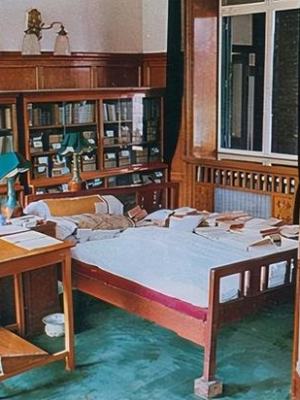 孟锦云等人害怕地震震落的墙皮会砸伤主席,随即扯来了一条床单,细心地抻开在主席床铺的上方。