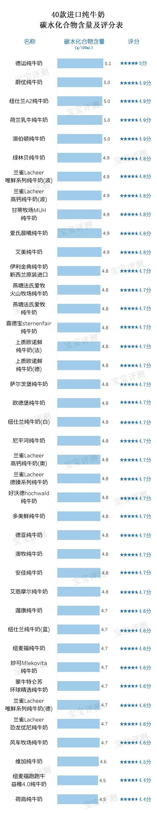 2、40款进口纯牛奶的碳水化合物一盒含量,与上期国产纯牛奶评测的情况基本一致200克,整体差别不大。