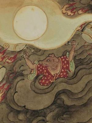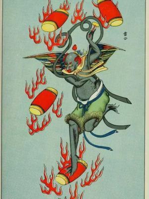 明五雷,佚名,雷神图轴《聊斋志异》中《娇娜》《小翠阳》两篇也以“雷劫说”铺垫。《娇娜》是说书生孔雪笠于患难之中结交皇甫公子及其一家,皇甫救济孔,并聘以表妹阿松(不是娇娜。至于为什么,请查看原文……)。后皇甫公子向孔雪笠道明自己全家皆狐之事,并央求孔助避雷劫,一家狐妖遂得活命。《小翠》则开篇即讲明狐狸受王太常之恩,得避雷劫,后狐女小翠嫁与王氏痴儿元丰,所为报恩之故。