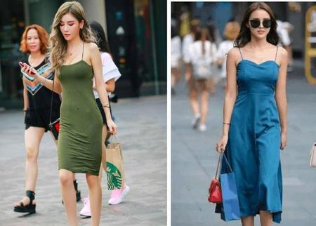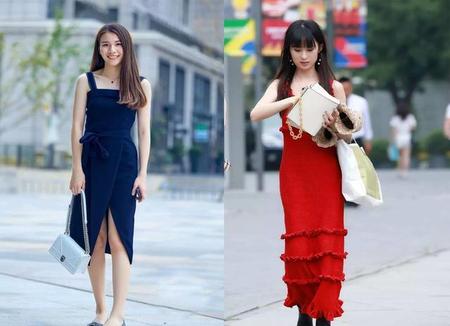 虽然都是背心裙,你会看到蓝色和红色的感觉完全不一样,利用冷色和暧色给人的错觉,也是夏天着衣上的一个小窍门哦。