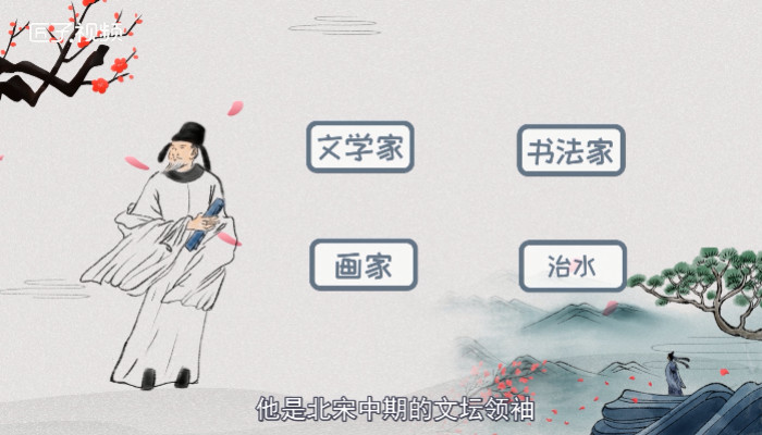苏轼是宋代诗人,是北宋著名文学家、书法家、画家,历史治水名人。他是北宋中期的文坛领袖,在诗、词、散文、书、画等方面取得了很高的成就。