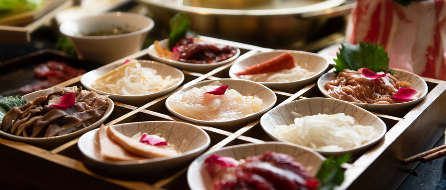 1、打开盖子,将盒子、食材盒加热包取出,然后撕开火锅调料包倒入内盒中。