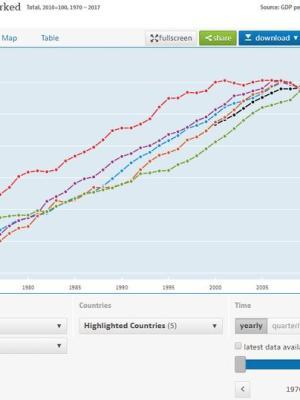 上个世纪语言五、六十年代里,意大利生产率(每小时工作产量)的增长速度超过大多数发达国家,创造了广为人知的“意大利经济奇迹”。七、八年代里,尽管通货膨胀率高、社会局势紧张,导致了严重的恐怖主义问题,但意大利的生产率增速仍与大多数发达国家保持一致。但是在九十年代中期,意大利的生产率停止了增长。这一现象始于2008年的金融危机之前,并在危机后延续。因此,今天意大利的人均收入与25年前并无二致。这种骤然的停滞该作何解释呢?