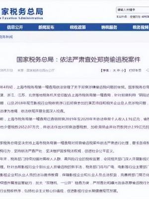 最后经税务机关查明,郑爽偷税4526.96万,被追缴税款一共2.99亿。