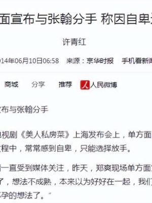 尽管如此,这段郑爽代恋情还是没能长久,郑爽是谁的老婆,且分手的时候撕得很旗下难看。