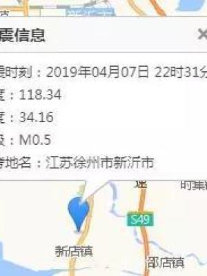 据江苏省地震台网测定:2019年04月07日22时31分,在江苏徐州市新沂市(北纬34.16度,东经118.34度)发生0.5级地震,震源深度大约17公里。