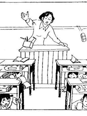 ——无论教室是楼房还是平房,同学们都要在老师的指挥下,迅速躲在各自的课桌下;