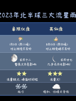 这场北半球唯一“气温友好”的大流星雨,2023年的预测流量仍然有每小时90颗左右,而且极大发生在农历的六月廿七,凌晨时分才会有一弯细细的残月升起,可以说月光对观测流星完全点钟构不成干扰。