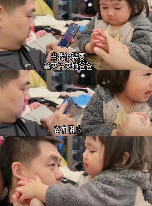 一位宝妈发文控诉亲子女儿女儿的“偏心”,当妈妈拿出晾衣服的会有夹子要夹爸爸耳朵时,女儿撅嘴皱眉一脸的不愿意,在妈妈拿出夹子的时候也是奋力阻止.
