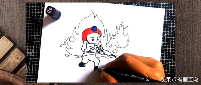 画出帽檐漂亮,消防员文字面部以及消防员的手