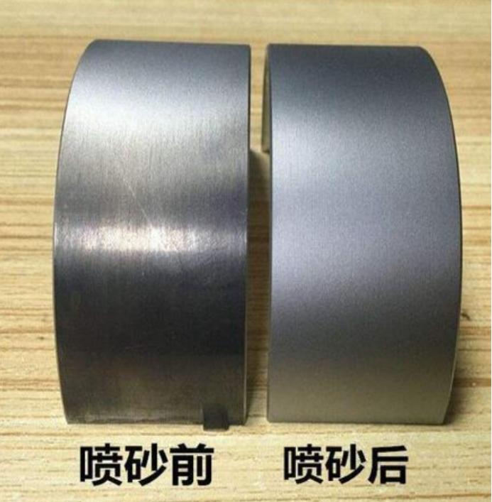 3、对于铸件或者热处理过的件来说,喷砂可以去除表面的油污和氧化皮,提高表面光洁度,漏出金属本色,是工件更加美观。