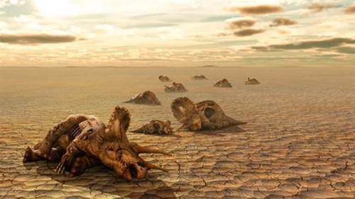 遮天蔽日的火山灰和寒冷的气候,杀死了大多数植食性的恐龙,肉食性的恐龙在吃完了尸体以后也纷纷灭绝了。