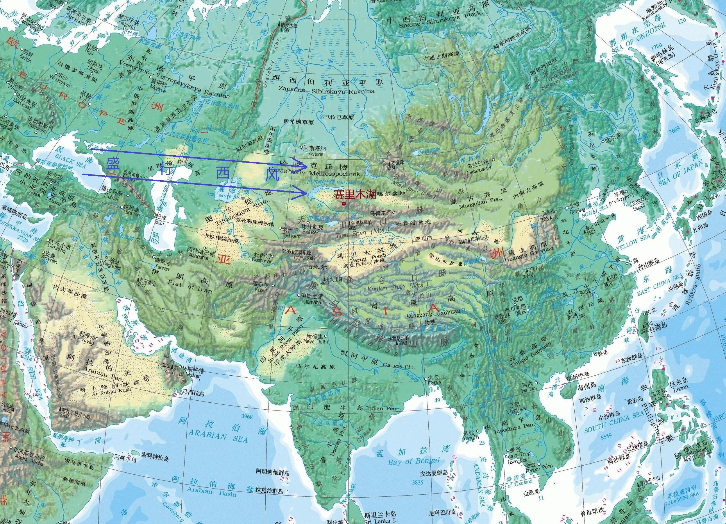 来自大西洋的西风带,携带了大西洋的水汽,一路从欧洲西部往东,途径东欧地区和中亚地区,到达我国西北部的天山山脉地区,空气中的水汽含量已经很少了。