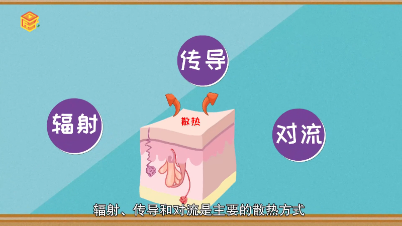皮肤是人体散热的主要渠道,当外界温度低于皮肤温度(33℃)时,辐射、传导和对流是主要的散热方式。当外界温度高于皮肤温度时,出汗便成为了主要的散热方式。