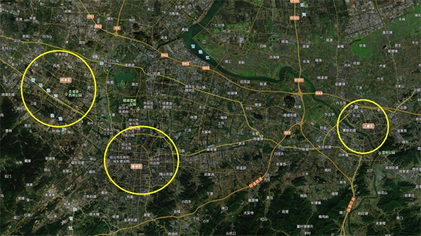 在绍兴市的三个市辖区当中,越城区、柯桥区、上虞区属于组团式的发展,下面地图可以看出,三块城区其实是分离的结构。
