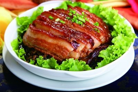 在南方流行比较广泛的五花肉做法无疑是这道粉蒸肉,这道菜肴在江南各地随处可见,它是由五花肉配上米粉以及其他调味品混合制作而成;区域口味的不同也没不会局限于它的口味,所以粉蒸肉的口味各异,唯一不变的就是它松松软软、软糯十足、肥而不腻的口感。