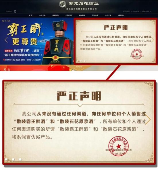 听说枝江人都不爱喝枝江酒了,谷城人还爱喝石花酒吗?打开石花酒厂的网站,着实惊了我一下。别人家网站的首页都是在彰显“我多么高大上”,在石花家的首页,第一眼看到的却是一则“打假声明”。有些憨憨,也有些霸气,有点儿西楚霸王的味道。