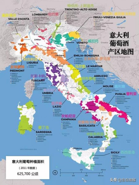 以下列举了意大利 20 大葡萄酒产区的葡萄种植面积、产区简介、主要品种及葡萄酒等,强烈建议收藏了慢慢读!