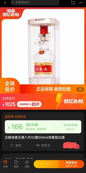 而在部分电商平台,还出现了低于1000元价格的产品。比如在淘宝一门店,在领取百亿补贴后,第八代五粮液的售价去到了859元/瓶,这一价格相较于1499元的原价近乎砍半,同时低于889元/瓶的计划内出厂价,价格下跌幅度如此之大实属罕见。不过南都湾财社