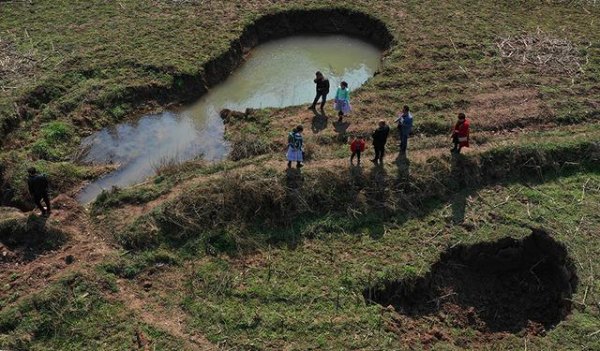 2015年,杨朝林家房屋背后5米处出现10米×12米圆形塌坑,深度2米。